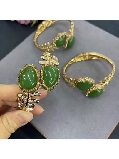 Nuevo estilo de pulsera de jade de doble apertura con mantenimiento de color, abastecimiento de joyas de brazalete abierto popular de exportación europea y estadounidense - Verde - Añade 1