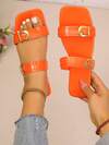Sandalias deslizantes elegantes y brillantes para mujer, con diseño de doble hebilla dorada, adecuadas para uso en interiores y exteriores
