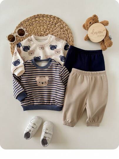 Conjunto de sudadera de manga larga y pantalones de punto con estampado de dibujos animados lindo para bebé recién nacido niño, otoño/invierno - Multicolor - Añade 4