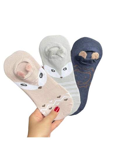 Kit 12 Invisible Pompom Slipper For Women With Animals - Multicolor - Añade 3