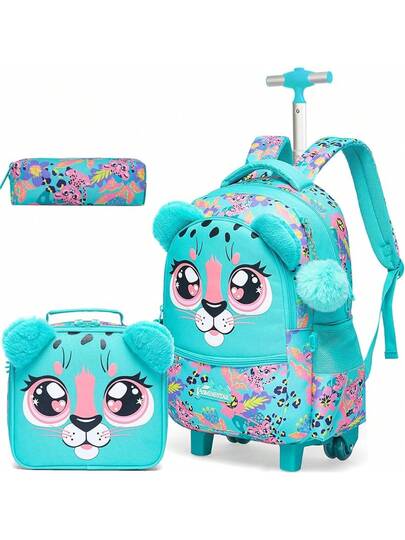Mochila con ruedas de unicornio, set para estudiantes de primaria, equipaje de mano con ruedas y mochila para niñas - Verde - Añade 3