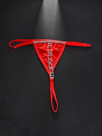Lencería de cadena para el Body sexy y de moda con letra inglesa de strass minimalista, adecuada para fiesta - plata roja - Añade 1