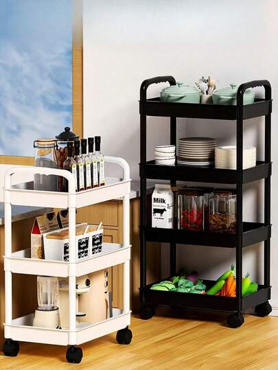Carrito de almacenamiento de tres niveles de una sola pieza - Con ruedas bloqueables y asa resistente, adecuado para oficina, sala de estar, cocina y hogar. Ahorra espacio y está equipado con ruedas giratorias de 360°. Carrito, carrito de almacenamiento rodante, carrito rodante, carrito de belleza, almacenamiento de baño, organización de baño, carrito multifuncional, estantería, almacenamiento del hogar