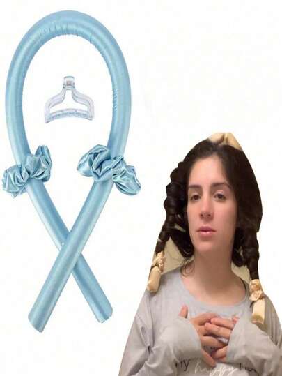 Set de 4 rizadores de cabello sin calor para mujeres con cabello largo, rodillos para el cabello para usar de noche con clips, kit de cintas rizadoras sin daño para ondas, esenciales para volver a la escuela, viajes y vacaciones, accesorios para el cabello para mujeres - Celeste - Añade 1