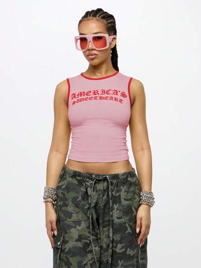 SUMWON WOMEN Camiseta de tirantes tipo top corto de jersey de algodón atlético, de estética retro y Urban Streetwear para gimnasio y entrenamiento, de moda juvenil para el verano y la primavera, estilo Sweetheart de los años 2000 para el 4 de Julio, Día de la Independencia de América - Rosa Pálido - Añade 1