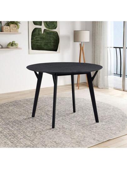 Mesa de comedor de madera de 106,7 cm de diámetro para 4 personas, diseño moderno, mesa de cocina redonda para sala de estar, apartamento, restaurante, color negro - Negro + Madera maciza + MDF + Redondo como en la imagen - Añade 1