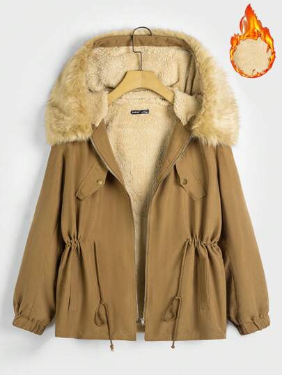 Manfinity VCAY Parka con capucha térmica con cordón en la cintura y ribete de peluche para hombres talla grande, para otoño e invierno - Multicolor - Añade 1