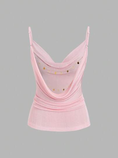 Sweetra Top de tirantes finos con detalles de cadena en la espalda, de estilo minimalista y sexy, para mujer - Rosa - Añade 5