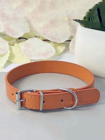 Collar para mascotas de piel sintética (PU), diseño plano y sencillo, de varios tamaños y multicolor, para perros y gatos - Naranja - Añade 1
