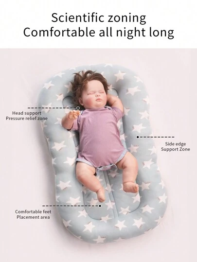 PURE CUDDLE 1 pieza Cama nido para bebé reversible de unicolor certificada OEKO-TEX, apta para todas las estaciones - Estrella - Añade 3