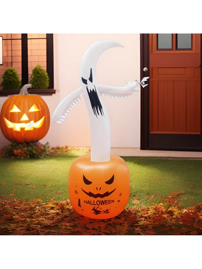Decoración inflable de Halloween de PVC con fantasma y calabaza, Ornamento de ambiente escalofriante para el jardín y la decoración del escenario de la fiesta de Halloween. - Blanco - Añade 1