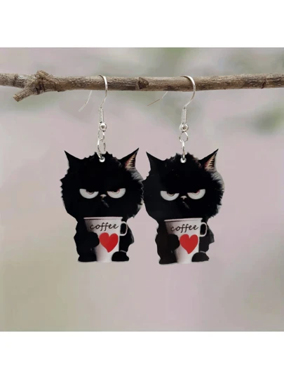 Pendientes acrílicos en forma de taza de café con gato negro de dibujos animados - Ligeros, sin enchapado, accesorio de moda para uso diario y ocasiones de fiesta - Regalo ideal para familia y amigos - Multicolor - Añade 1