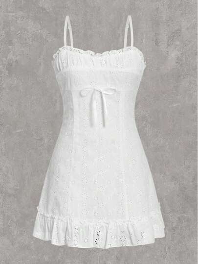 SHEIN EZwear Vestido De Vacaciones Blanco Para Mujer De Cuello Halter Y Tejido Entrelazado - Blanco - Añade 4