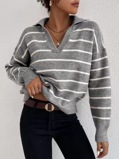 EMERY ROSE Jersey acanalado con escote abierto y hombros caídos, blusas de manga larga - Multicolor - Añade 4