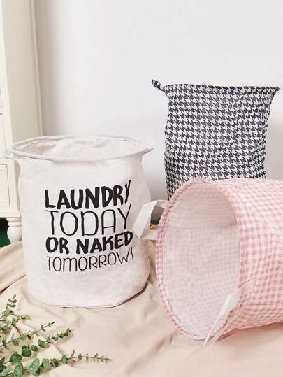 1 pieza Cesta de lavandería extra grande de poliéster, cesta de lavandería con gráfico de letra moderna para el hogar - Multicolor - Añade 10