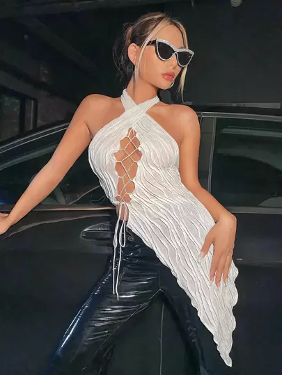 SHEIN ICON Top halter con cordón delantero bajo asimétrico - Albaricoque - Añade 4