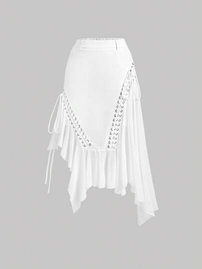 SHEIN MOD Falda asimétrica con volantes para mujer, falda bohemia, para conciertos, vestimenta occidental para mujer, falda larga, falda blanca, falda de talle bajo - Blanco - Añade 1