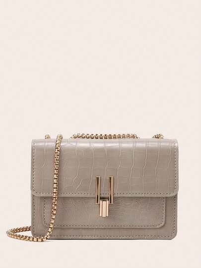 Bolso de hombro de patente con cadena para mujer, nuevo diseño de moda con estampado de cocodrilo - Café integral - Añade 1