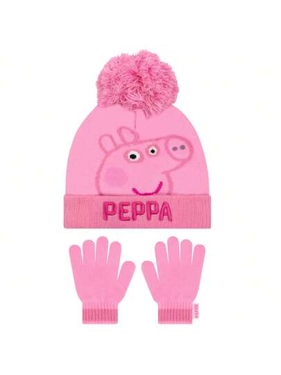 Conjunto de gorro y guantes de Peppa Pig para niña, conjunto de invierno - Rosa - Añade 4