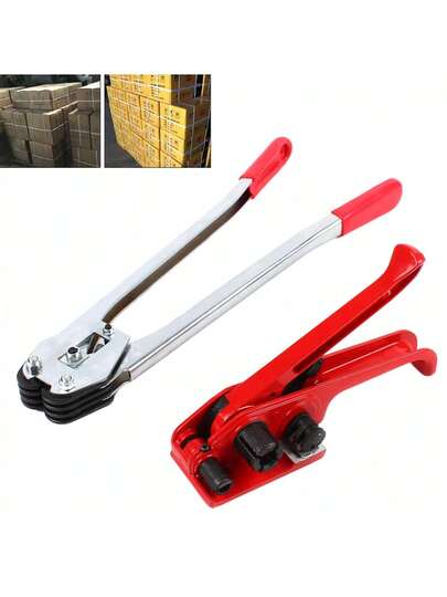 Plastic Steel Strapping Machine, Manual Bundling Packaging Machine, Including Packaging Clamps And Tensioners, Plastic Sealing Machine, Suitable For Widths Of 0.51/0.63/0.75 Inches - Rojo - Añade 8