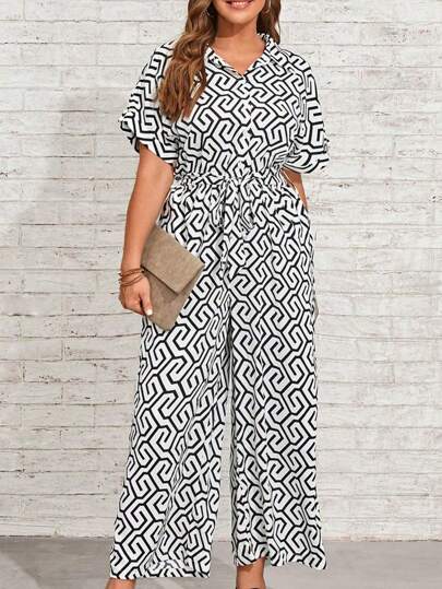 EMERY ROSE Mono camisero con estampado con cinturón - Blanco y Negro - Añade 2
