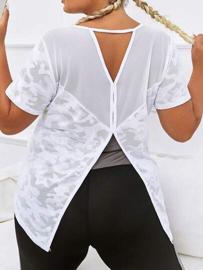 SHEIN Daily&Casual Camiseta deportiva con estampado de camuflaje con abertura bajo con abertura - Blanco - Añade 4