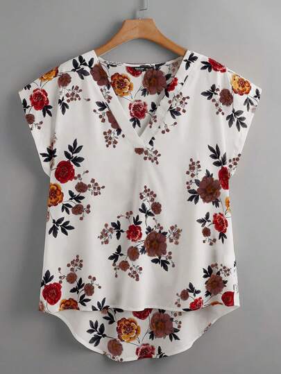 Mulvari Camisa bajo irregular con estampado floral - Blanco - Añade 4