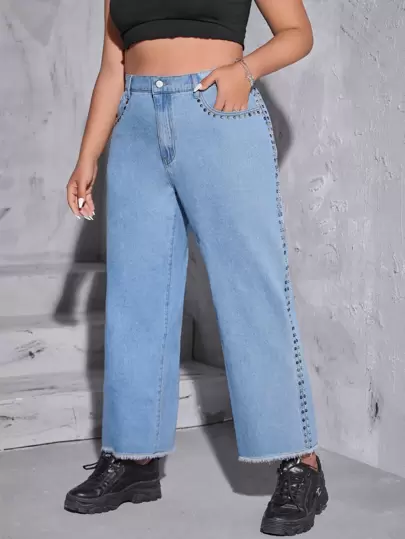 Jeans de pierna recta de talle alto bajo crudo - Azul lavado medio - Añade 1