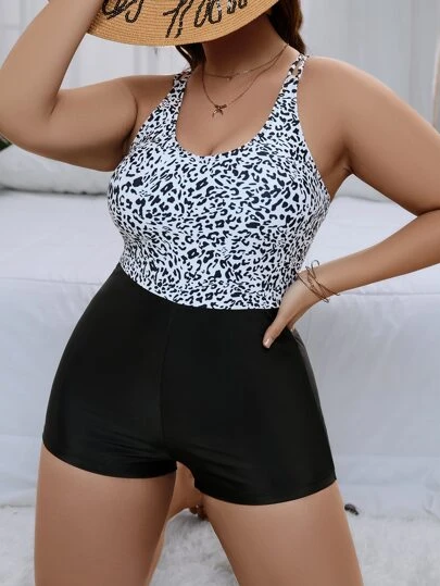 Bañador una pieza con estampado de leopardo con tira cruzada - Blanco y Negro - Añade 2
