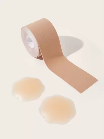 Talla grande 1 par Cubierta de pezón de silicona con cinta mamaria - Albaricoque - Añade 3