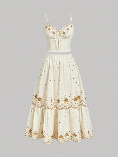 SHEIN MOD Conjunto de top de camisa corta y minifalda con estampado floral de color albaricoque en tallas grandes - Multicolor - Añade 6