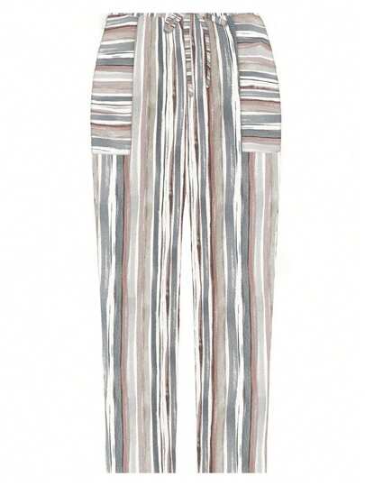 SHEIN LUNE Pantalones casuales entallados a rayas para talla grande - Multicolor - Añade 4