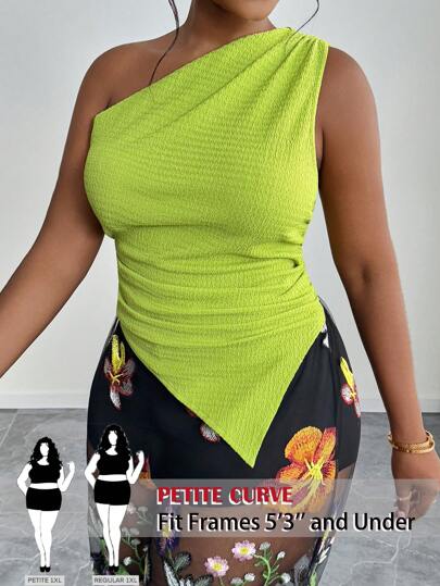 SHEIN PETITE CURVE Blusa sin mangas de talla grande con cuello y bajo asimétrico en unicolor - Verde - Añade 5