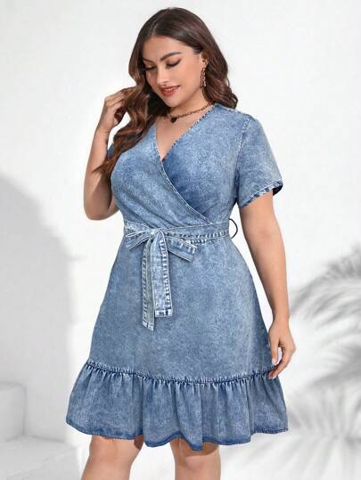 EMERY ROSE Vestido vaquero lavado informal de talla grande, de verano - Lavado ligero - Añade 4
