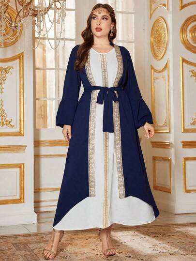 Al Najma Vestido casual de manga larga de moda simple para uso diario en tallas grandes - Multicolor - Añade 2
