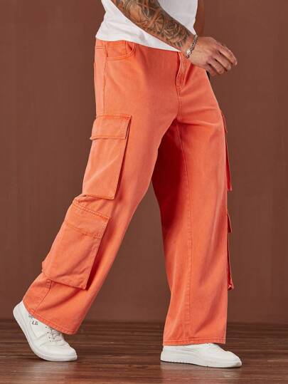 Manfinity Homme Jeans holgados tipo cargo en mezclilla lavada naranja-gris para hombre de talla grande - Naranja Quemada - Añade 1