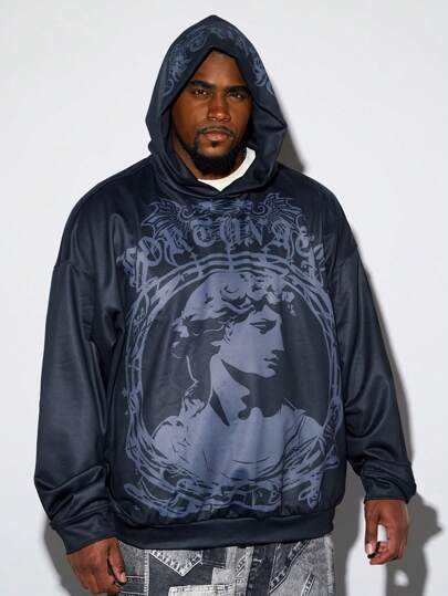 Manfinity VCAY Sudadera con capucha de manga larga con estampado de figura de yeso suelta para hombres de talla grande, para otoño e invierno - Negro - Añade 2