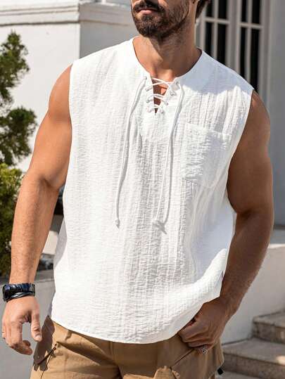 ResortEase Camiseta de tirantes holgada de color liso para hombres de talla grande - Albaricoque - Añade 6