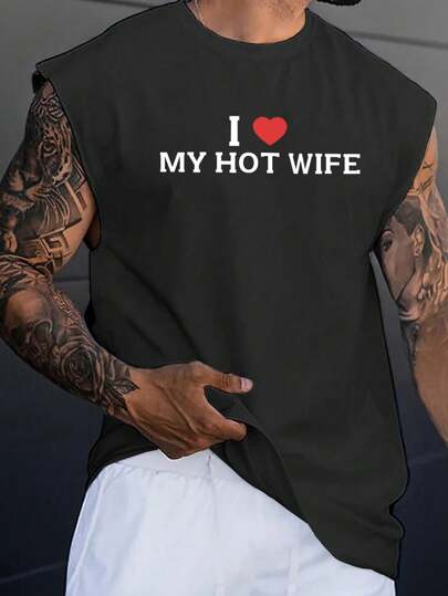 Camiseta de tirantes holgada con estampado de eslogan para hombres de tallas grandes - Negro - Añade 1
