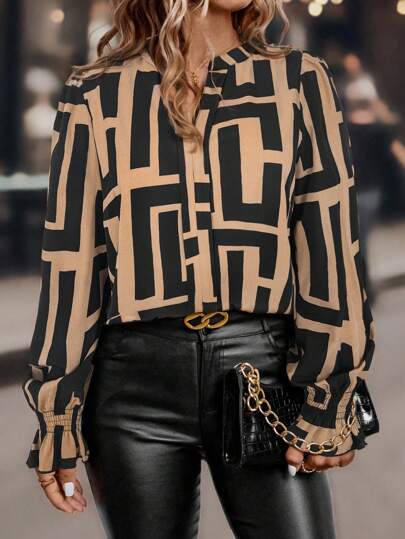 Camisa casual de talla grande con estampado, de ajuste regular, para otoño - Albaricoque - Añade 1