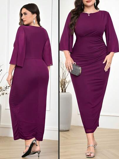 Modelyn Vestido informal de unicolor talla grande, elegante y apropiado para el verano - Morado - Añade 4