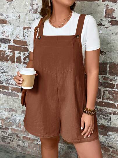 SHEIN LUNE Mono de talla grande de unicolor, sin mangas, holgado y casual, para el verano - Marrón Chocolate - Añade 4