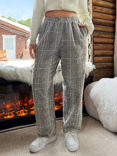 SHEIN EZwear Pantalones rectos y holgados gruesos y cálidos para otoño/invierno, en tonos grises, talla grande - Gris Oscuro - Añade 4
