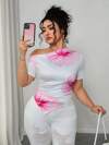 SHEIN Camiseta de mujer de talla grande con decoración metálica y hombros descubiertos, para verano