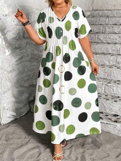 EMERY ROSE Vestido corto de manga corta asimétrico y elegante de lunares multicolor para mujer de talla grande - Multicolor - Añade 1