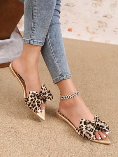 Sandalias planas de punta puntiaguda para mujer talla grande, zapatos planos versátiles y cómodos - Color leopardo - Añade 6