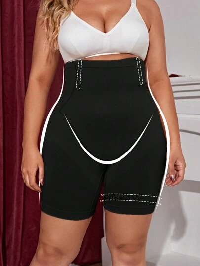 Mujeres de talla grande Panties de control de barriga sin costuras de unicolor de cintura alta, 1 pieza - Negro - Añade 5
