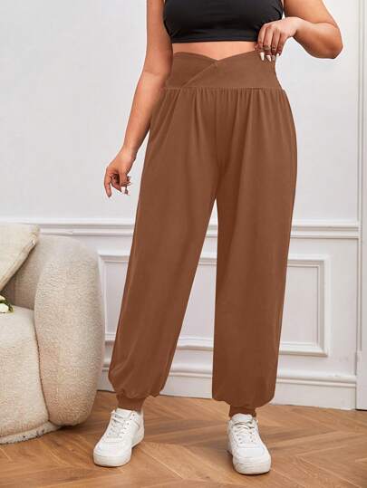 SHEIN LUNE Talla grande Pantalones unicolor asimétrico cintura cintura - Café integral - Añade 4