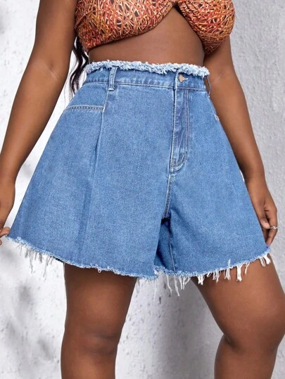 Talla grande Shorts en mezclilla unicolor ribete crudo de pierna ancha - Lavado ligero - Añade 3