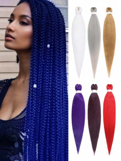 Extensiones de cabello para trenzas de fibra sintética con degradado de color, preparadas y listas para trenzar, con textura suave tipo yaki, ideales para trenzas de caja, con ajuste al agua caliente - Multicolor - Añade 4